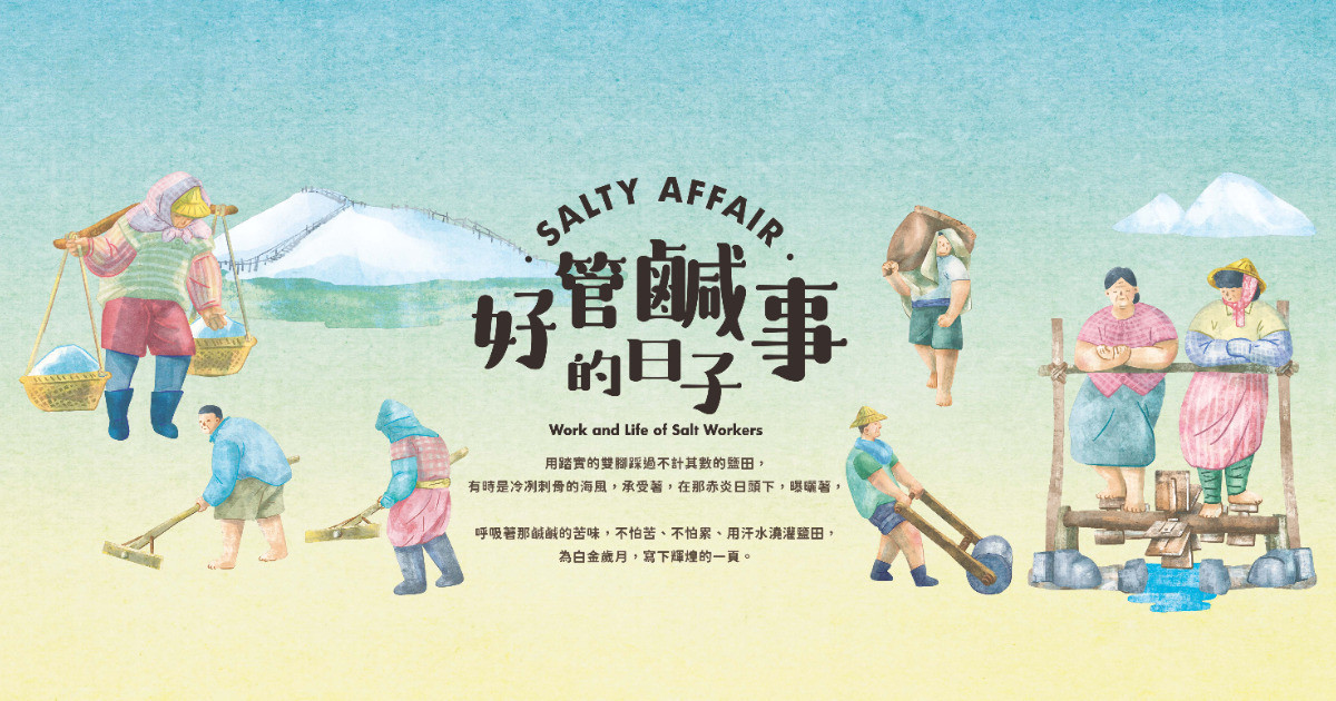 本展覽將以故事的主角「鹽工」為主題,分別由「家.走讀鹽之村」、「勞作. .鹽工1/365」、「再現.鹽工技能」等展示主題、感受鹽工生活風貌,期盼在展覽的互動及閱讀中,更加瞭解鹽文化內在意義。
